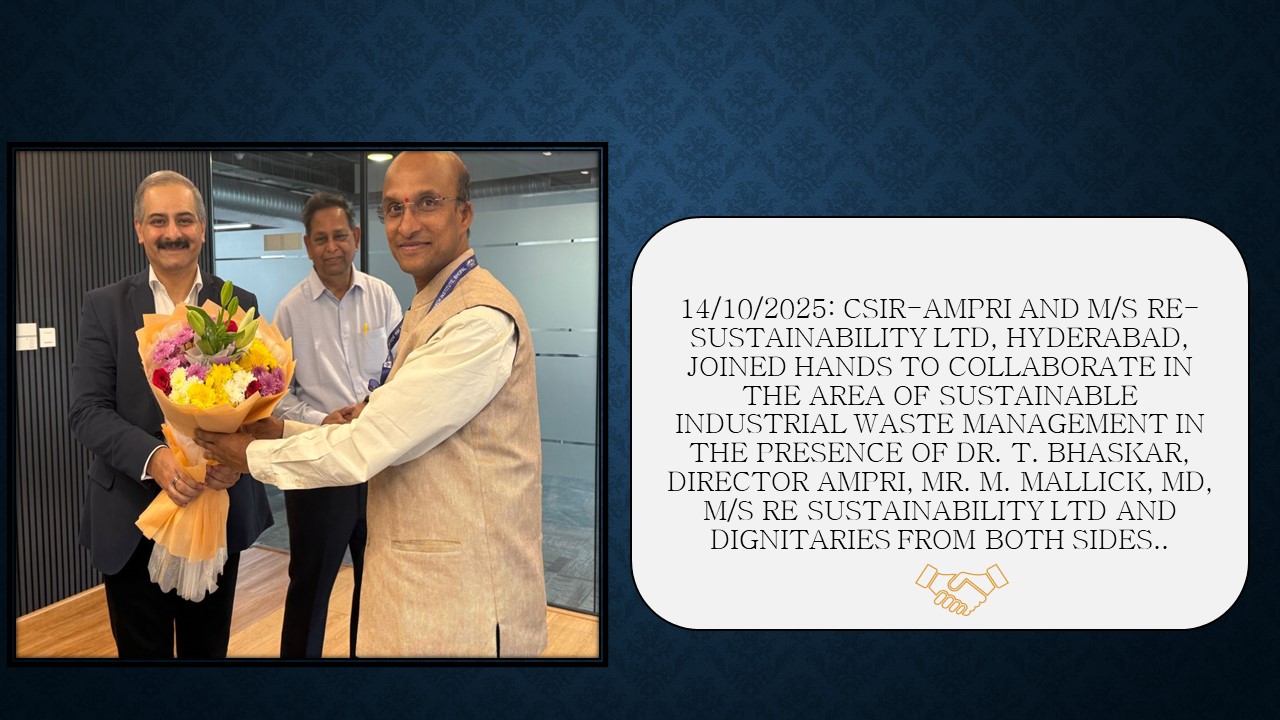 At CSIR-AMPRI, we focus on developing innovative solutions rooted in science to address national and global challenges in materials engineering, waste-to-wealth technologies, lightweight and sustainable composites, and value-added products from industrial wastes. Our interdisciplinary research spans metallurgy, nanomaterials, biomaterials, environmental engineering, and more-catering to key sectors such as aerospace, defense, infrastructure, and energy.